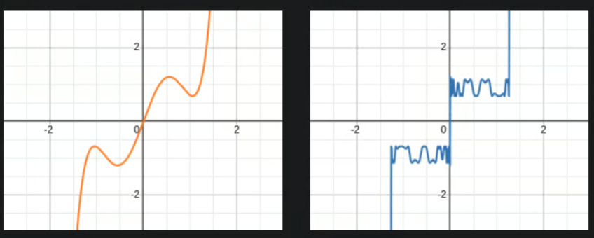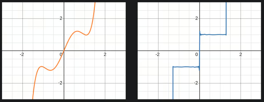the cursed quintic gives us one ugly-looking sign function but has all the right characteristics + it’s fast